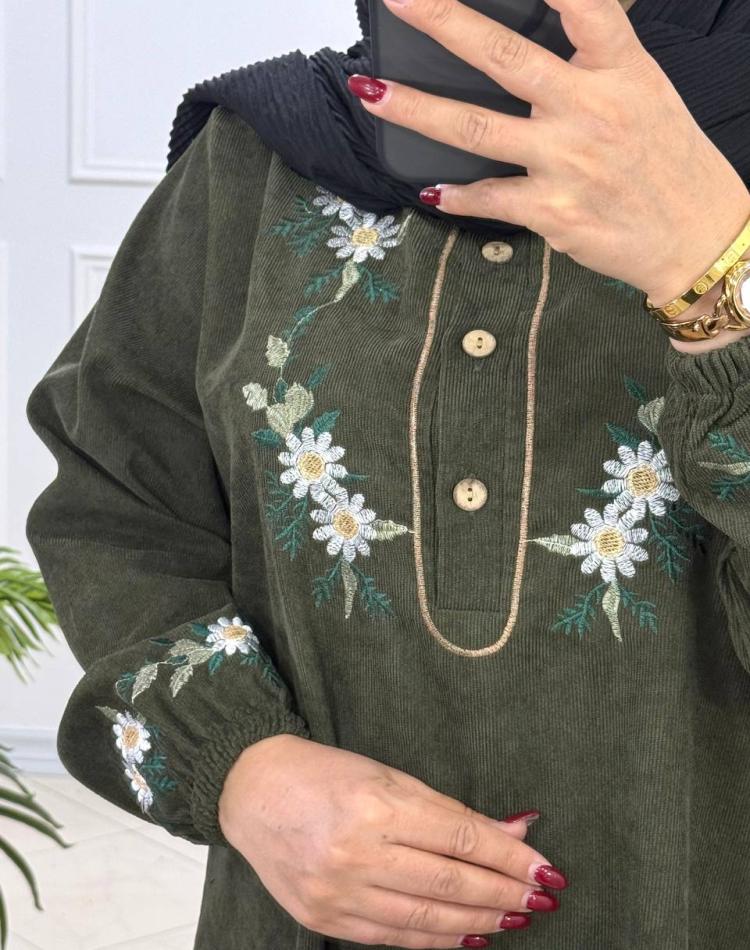 قسمت بالاتنه و سر آستینش گلدوزی ظریف و شیک کارشده