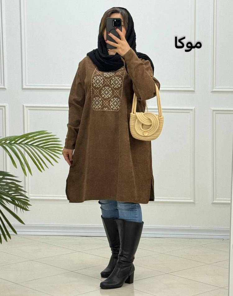 شومیز مانتویی مخمل کبریتی گلدوزی شده، انتخابی خاص برای بانوان خاصپسند