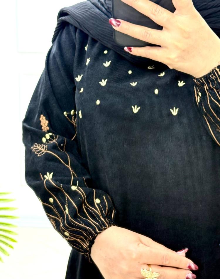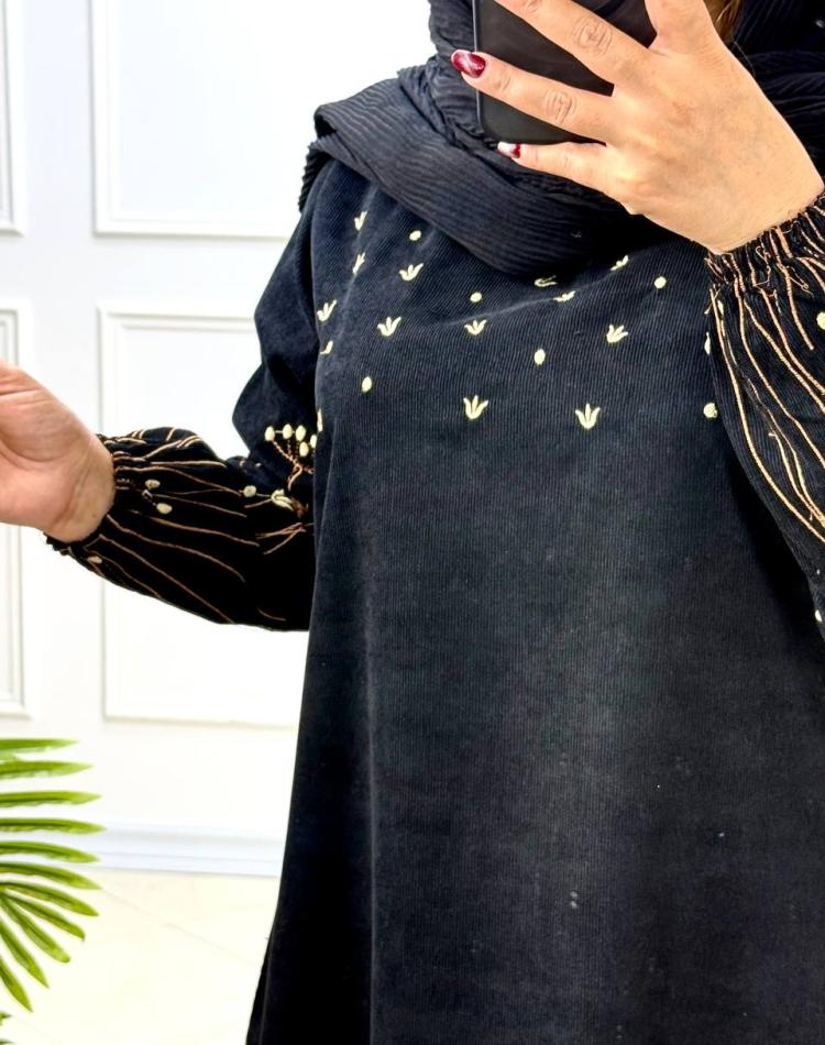 ✔️قسمت بالاتنه مغزی دوزی شده و سر استین گلدوزی شیک و ظریف داره که زیبایی کارو چند برابر کرده